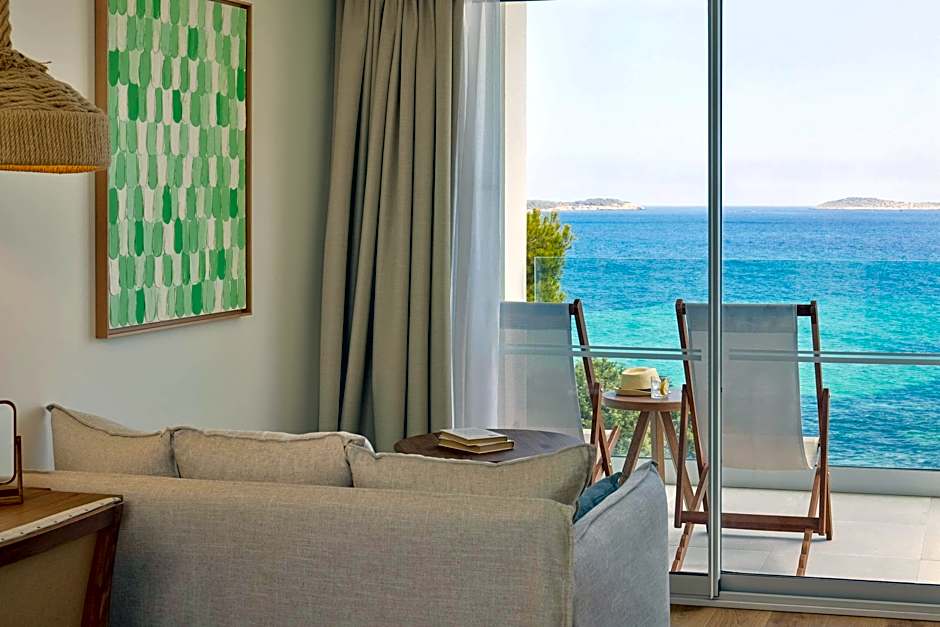 This quiet, air-conditioned room offers stunning sea views. Renovated in 2015, it is decorated in a modern, fresh Mediterranean style. It comes with satellite TV, telephone, safe and mini-bar. The private bathroom comes with a shower and hairdryer. The room was renewed in 2024.